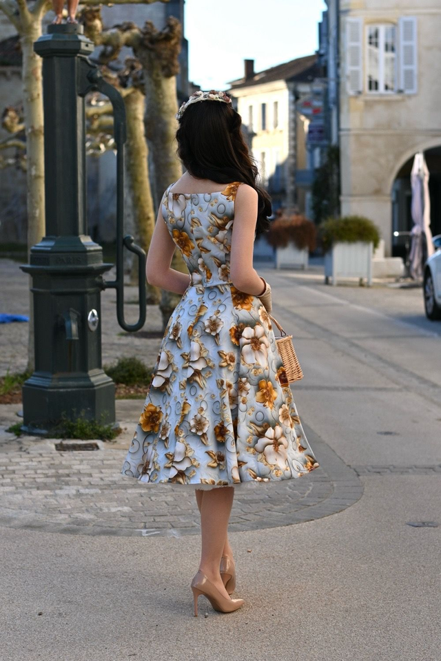 Astu ajattomaan eleganssiin vintage-henkisessä Mavis Swing -mekossa, joka on suunniteltu niille, jotka rakastavat klassista tyyliä modernilla twistillä. Imartelevalla sydämenmuotoisella pääntiellä ja hihattomalla siluetilla varustettu mekko korostaa tyylikkyyttäsi ja takaa samalla mukavuuden.. Ylellinen kultainen ja kermanvärinen kukkakuvio, joka on suunniteltu näyttävällä 3D-efektillä. Mekko, jossa on piilotetut sivusaumataskut käytännöllisyyden takaamiseksi ja piilotettu vetoketju takana saumattoman istuvuuden takaamiseksi, sopii täydellisesti eri tilaisuuksiin tai jokapäiväiseen glamouriin. Yhdistä se suosikkikorkokenkiesi ja vintage-asusteidesi kanssa luodaksesi vaivattoman tyylikkään ilmeen!